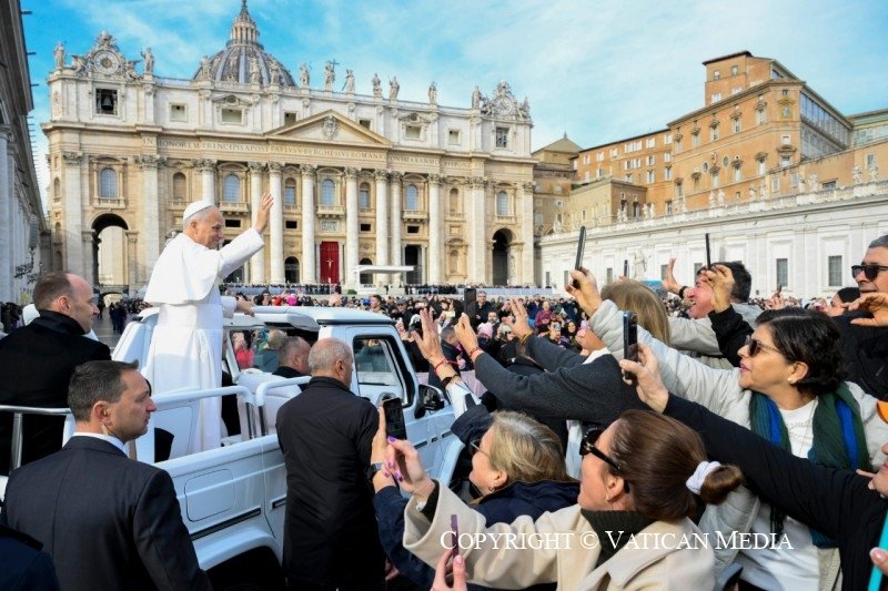 (ZENIT Noticias / Ciudad del Vaticano, 22.11.2025).- Por la mañana del sábado 22 de noviembre, el Papa León XIV presidió la audiencia especial que se tiene los sábados en ocasión del Jubileo 2025. La audiencia se tuvo en una Plaza de San Pedro llena de personas, muchas de las cuales, unas 35 mil, se trataba de coros llegados a Roma para celebrar su propia jornada en el contexto del Año Santo 2025. Ofrecemos a continuación la traducción al castellano de la catequesis del Papa, realizada por ZENIT: